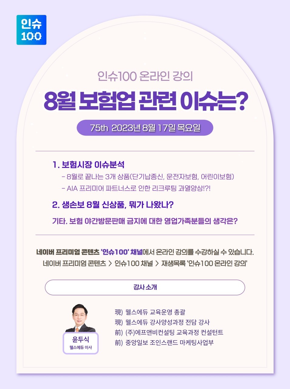 인슈100 프리미엄 콘텐츠 채널에 75번째 강의가 공개됐습니다~!!